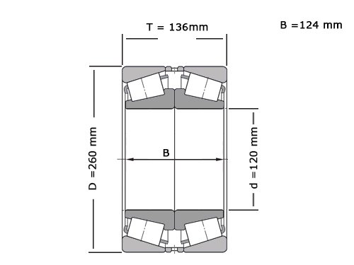 FAG, Kegellager, 31324, N11CA, A140, 180, 2pcs., 120x260x136mm.