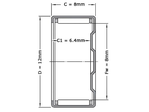 INA, Naaldlager, BK0808, 8x12x8mm.