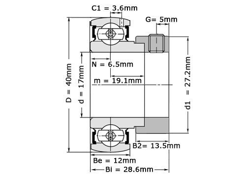 NTN, Insert, Lager, AEL203, D1, 17x40x28.6mm.