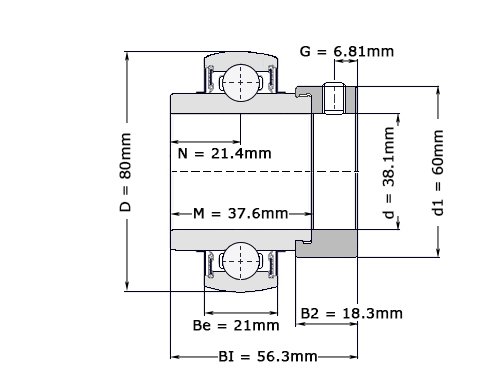NTN, Insert, Lager, UEL208, 108, D1, W3, 38.1x80x56.3mm.