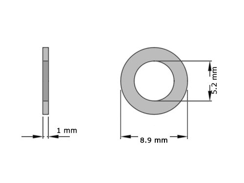 Ring, Koper, DIN, 7603, 5x9x1mm.